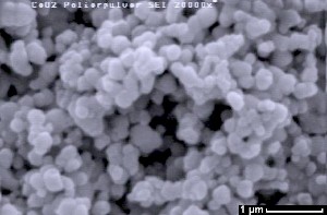 Ceroxid-Polierpulver. Die Körner haben einen Durchmesser zwischen 200 und 300 nm.