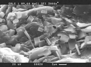Steinsalz, diagenetisch entstanden, in einem roten Schlammstein.