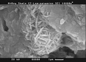 Opal-CT-Lepisphären in diagenetisch verändertem Diatomit.
