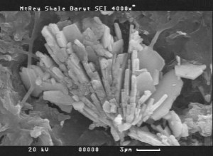 Baryt-Rosette in diagenetisch verändertem Diatomit.