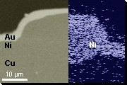![]() Ni-Cu-Partikel unter Nickel- und Gold-Schicht |