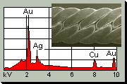Mit der Elektronenstrahlmikrosonde werden die Metalle einer Edelmetall- Legierung bestimmt und ihre Gehalte berechnet, ohne dass das Werkstück, z. B. ein Schmuckteil, zerstört werden muss. |