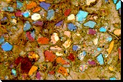 ![]() Quarz-Silt (bunt) mit Kalzit gebunden |